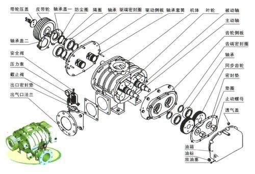 三葉羅茨鼓風機與二葉型相比,氣體脈動性小,振動也小,噪聲低。風機兩根軸上的葉輪與橢圓形殼體內(nèi)孔面,葉輪端面和風機前后端蓋之間及風機葉輪之間者始終保持微小的間隙,在同步齒輪的帶動下風從風機進風口沿殼體內(nèi)壁輸送到排出的一側(cè)。兩只轉(zhuǎn)子均固定於一組同步齒輪上,因此轉(zhuǎn)動時,汽缸和轉(zhuǎn)子間維持著相當微小的間隙,使其不互相接觸,一般情形其間隙大約在十分之幾毫米。因為彼此不相摩擦,故可以高速運轉(zhuǎn)而獲得大的風量或排氣速度。風機內(nèi)腔不需要潤滑油,結(jié)構(gòu)簡單,運轉(zhuǎn)平穩(wěn),性能穩(wěn)定,適應(yīng)多種用途,已運用于廣泛的領(lǐng)域。